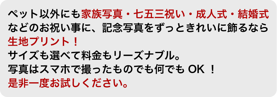 わんちゃん、猫ちゃんの写真を生地にプリントしませんか?